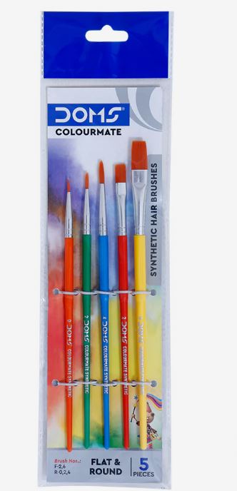đī¸ DOMS Colour Brush Set â 5 pcs (Flat & Round) Perfect for school projects, hobby painting, and creative detailing.