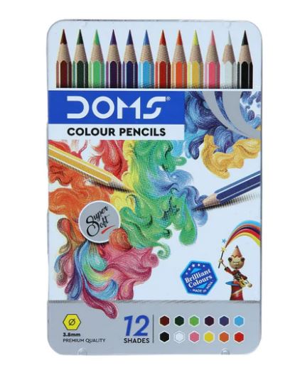 DOMS Colour Pencil in Flat Tin Pack in 12 & 24 Shades