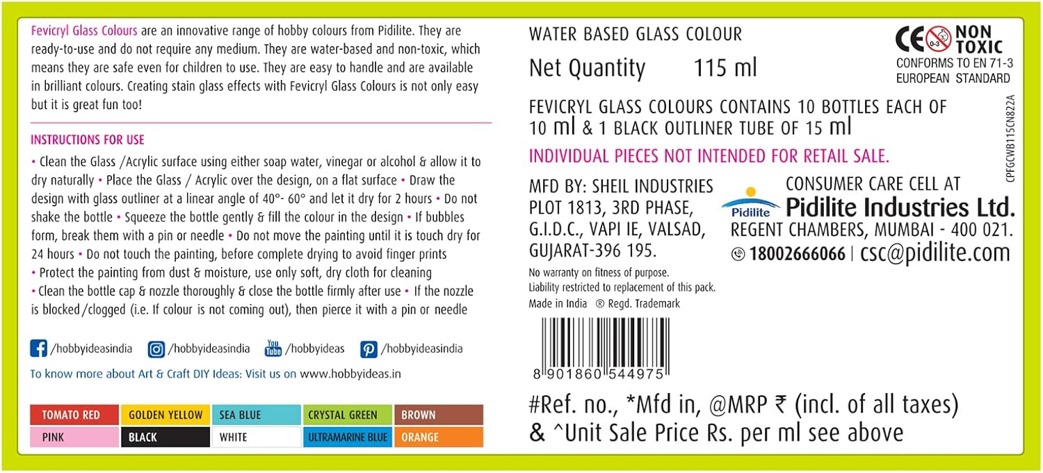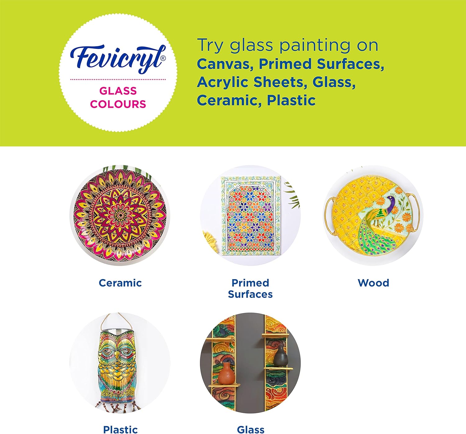 - 🖌️ Brand: Pidilite Fevicryl Glass Colours (Water-Based)